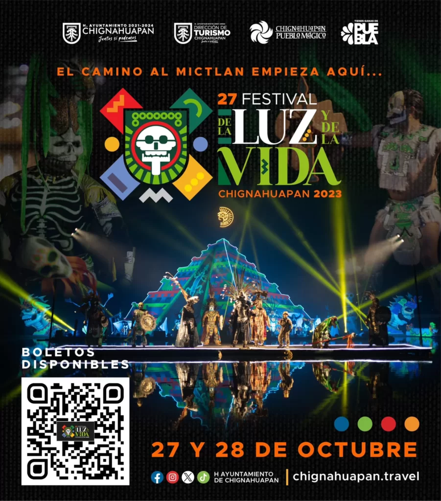 Recientemente, el ayuntamiento de Chignahuapan, Puebla, anunció las fechas para disfrutar de este espectáculo que se realiza con motivo del Día de Muertos.Según las redes sociales del mencionado Pueblo Mágico, el Festival de la Luz y de la Vida 2023 se llevará a cabo el 27 y 28 de octubre.El lugar será el mismo que los años anteriores, ósea el Teatro al Aire libre, ubicado en Juan C. Bonilla número 46, Ixtlahuaca.Habrá cuatro zonas con boletos de precios diferentes, mismos que ya puedes adquirir dando click AQUÍ:Zona 1: Mil 200 pesos por personaZona 2: 800 pesos por persona Zona 3: 900 pesos por persona Zona 4: 300 pesos por persona