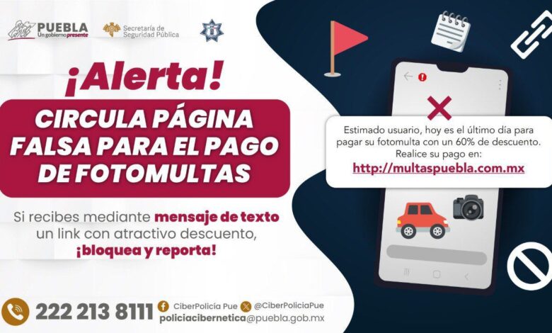 Alertan sobre mensajes fraudulentos para pago de fotomultas en Puebla