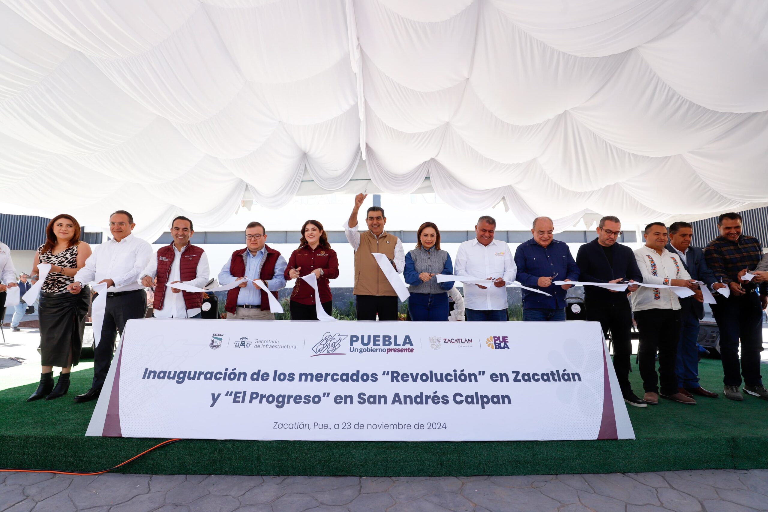 El gobierno de Puebla ha consolidado el desarrollo y bienestar en la entidad gracias también a la suma de los distintos sectores de la población, manifestó el gobernador Sergio Salomón al inaugurar el mercado “Revolución” en este municipio y vía virtual un inmueble similar en San Andrés Calpan.