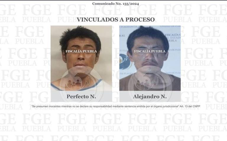 Por un lado, la Fiscalía General del Estado de Puebla (FGE) informó que a través del agente del Ministerio Público obtuvo la vinculación a proceso de Perfecto N, y Alejandro N, presuntos responsables del delito de robo agravado.