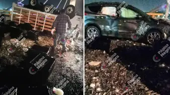 En un intento de asalto, un camión cargado con camarones volcó en el puente de la Vía Corta a Santa Ana, el cual atraviesa la autopista México-Puebla.Alrededor de las 6:00 am de este 1 de octubre ocurrieron los hechos en los carriles con sentido de la Central de Abasto, hacia el bulevar Norte, donde hubo disparos.La información inicial indica que los responsables del intento de asalto empezaron a darle cerrones al camión para que se detuviera mientras circulaba en inmediaciones de la autopista México Puebla.Estos hombres armado viajaban en cuatro vehículos, un Nissan Sentra rojo, un Chevrolet Aveo azul, un auto gris modelo atrasado y una camioneta de color gris.Debido a que el conductor no se paró, los delincuentes dispararon en al menos cuatro ocasiones.Mientras los delincuentes intentaban detener la marcha del camión ocurrió el choque de dicha unidad con una camioneta gris, donde viajaban unos de los asaltantes.Por el impacto el camión terminó volcado y quedó con las cuatro llantas hacia arriba y la mercancía que transportaba cayó sobre el pavimento.