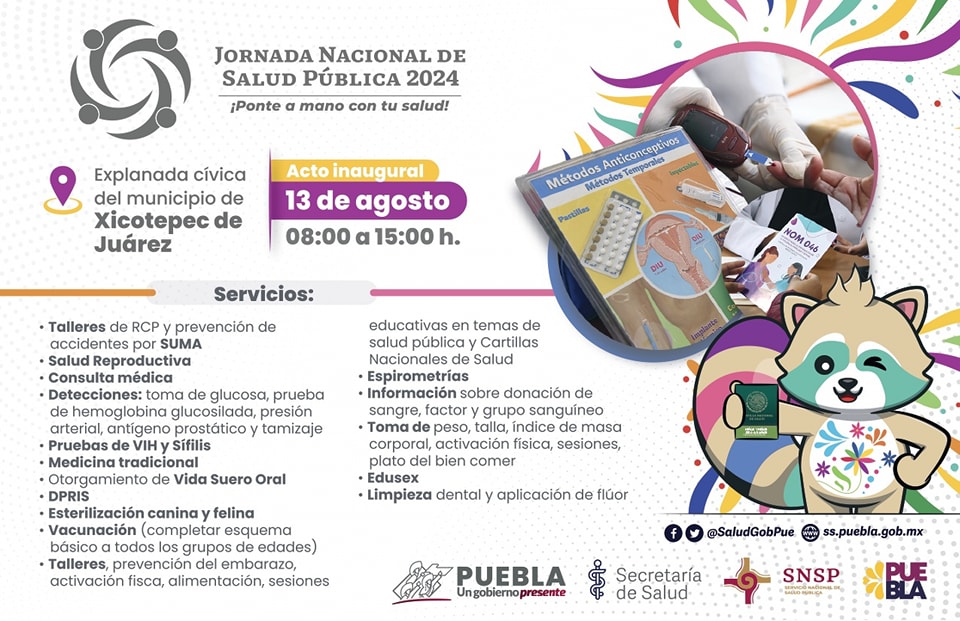 El 13 de agosto, Xicotepec será sede de la Jornada Nacional de Salud Pública 2024 en la explanada del municipio. El evento promoverá la cultura del autocuidado y ofrecerá servicios de salud y prevención de enfermedades.