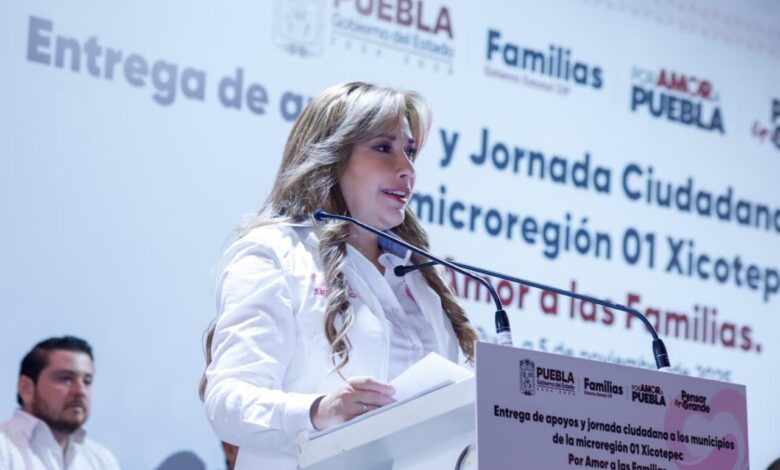 La presidenta del Patronato del SEDIF, Ceci Arellano, encabezó la entrega de sillas de ruedas, aparatos funcionales, alimentos y cheques comunitarios durante las Jornadas Ciudadanas realizadas en las microrregiones de Xicotepec y Huauchinango.
