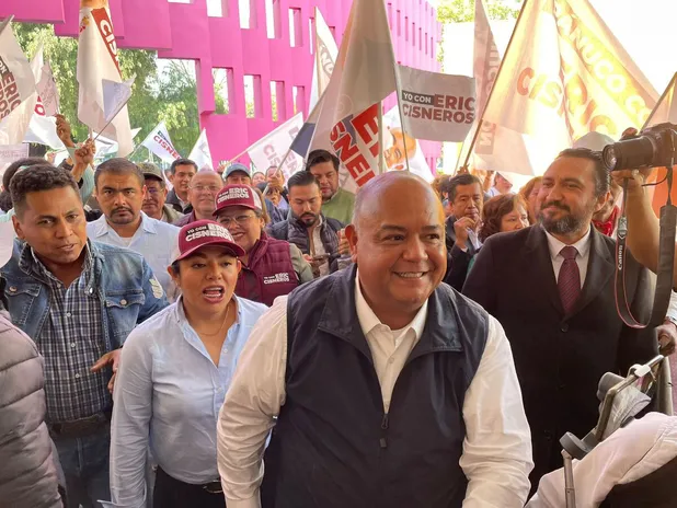 El primero en llegar al hotel Camino Real de Polanco fue el delegado del Bienestar, Manuel Huerta, seguido del secretario general de Gobierno, Eric Cisneros, quien estuvo acompañado de porra y batucada incluida, quien gritaba a su paso: “¡Gobernador! ¡Gobernador!”, y “¡Sí se puede! ¡Sí se puede!”, para concluir con el de “¡No a imposición! ¡No a imposición!”.