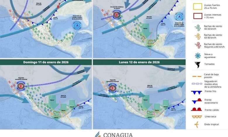 La Coordinación General de Protección Civil y Gestión del Riesgo de Desastres informó que, además de las precipitaciones, se espera un marcado descenso en la temperatura y vientos fuertes, condiciones que podrían ocasionar riesgos en vialidades, desbordamientos de cuerpos de agua y afectaciones en zonas vulnerables.