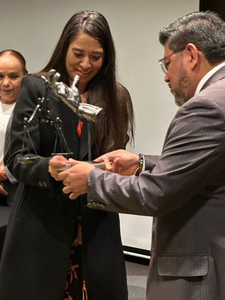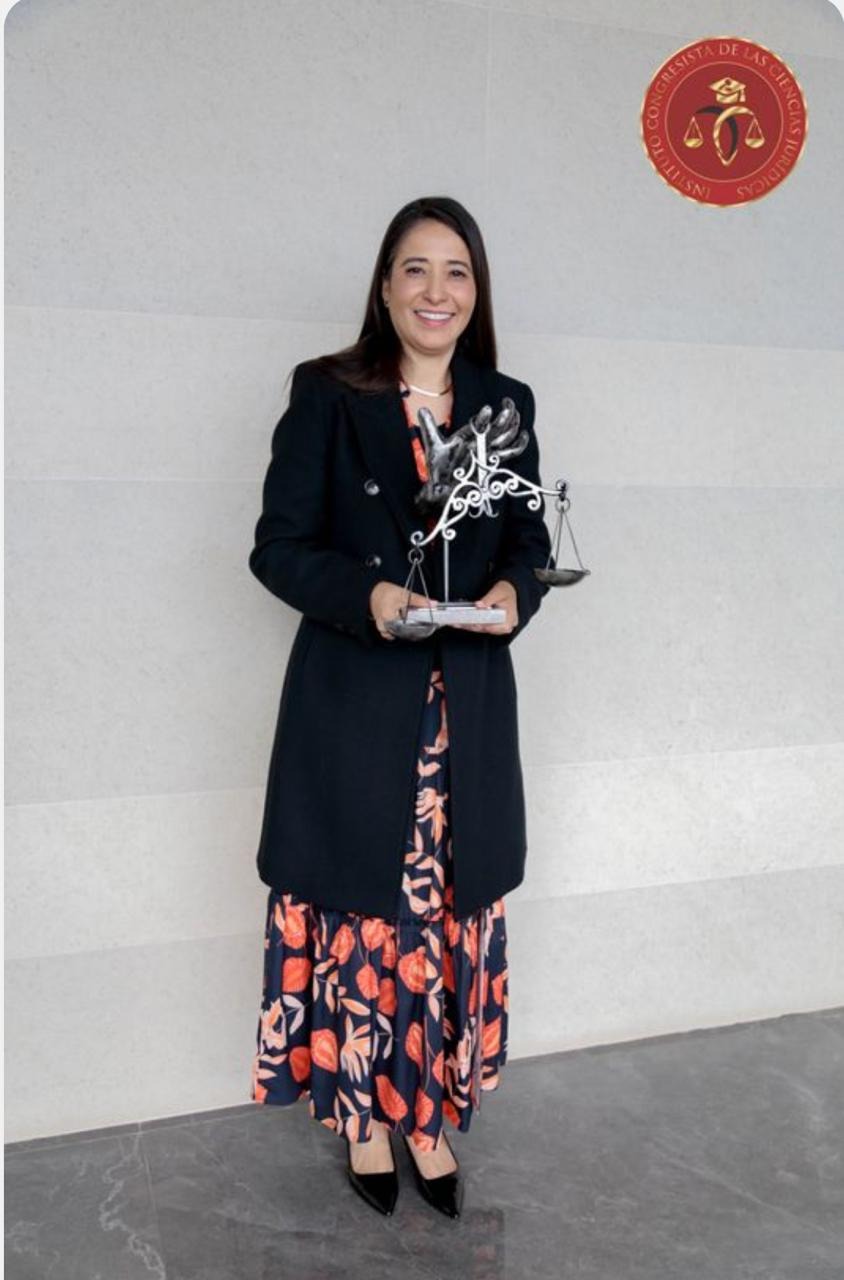 La Maestra Indira Isabel García Pérez, Magistrada del Tribunal de Disciplina Judicial, fue galardonada por el Instituto Congresista de Ciencias Jurídicas por su contribución a la justicia y su amplia trayectoria profesional. El reconocimiento incluyó la escultura “La mano que sostiene la justicia”, pieza creada por el destacado escultor hidalguense Onésimo Ávila.
