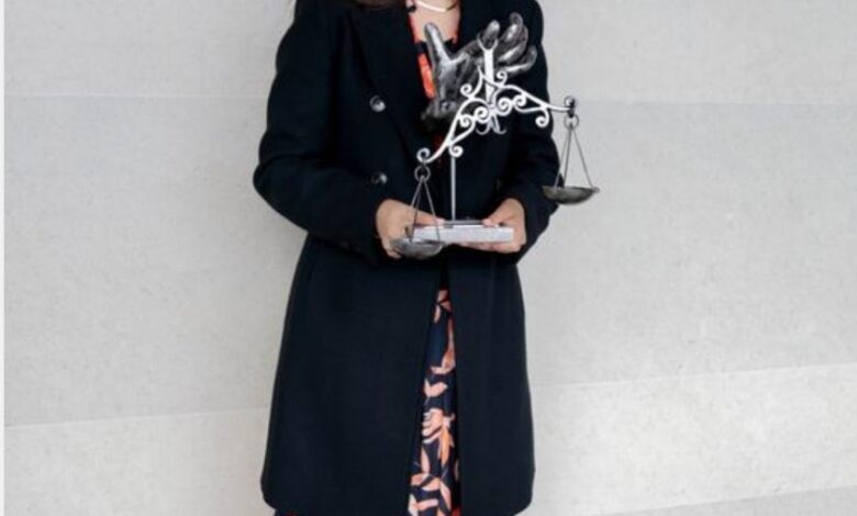 Reconocen a la Magistrada Indira Isabel García Pérez con escultura “La mano que sostiene la justicia”