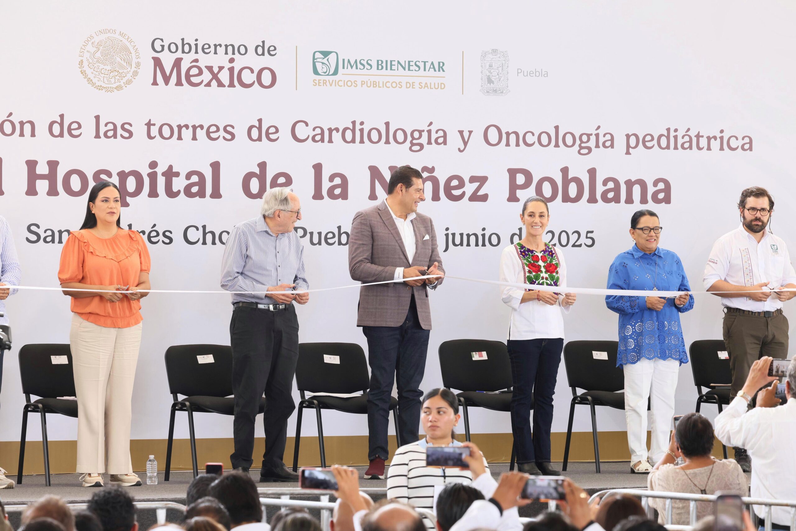 La presidenta de México inauguró dos nuevas torres en el Hospital de la Niñez Poblana, la Torre de Especialidades Oncológicas y la Torre de Cardiología y Hemodinamia, con una inversión de 915 mdp.