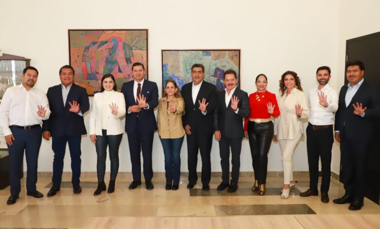 El gobernador de Puebla y líder político de Morena en el estado, Sergio Salomón Céspedes se reunió este lunes con el virtual candidato a la gubernatura, Alejandro Armenta, los dirigentes partidistas en la entidad y los seis exaspirantes restantes. Incluso en el encuentro estuvo el diputado federal, Nacho Mier.