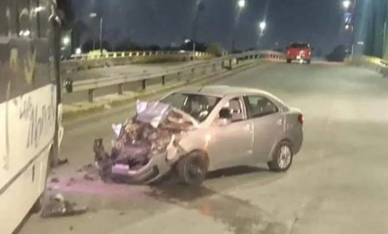 Antes de que salieran los primeros rayos de sol se registró el primer incidente este viernes 29 de agosto. El conductor del vehículo gris se metió en sentido contrario al puente vehicular a la altura de Colombres, y chocó con una unidad de transporte de personal.