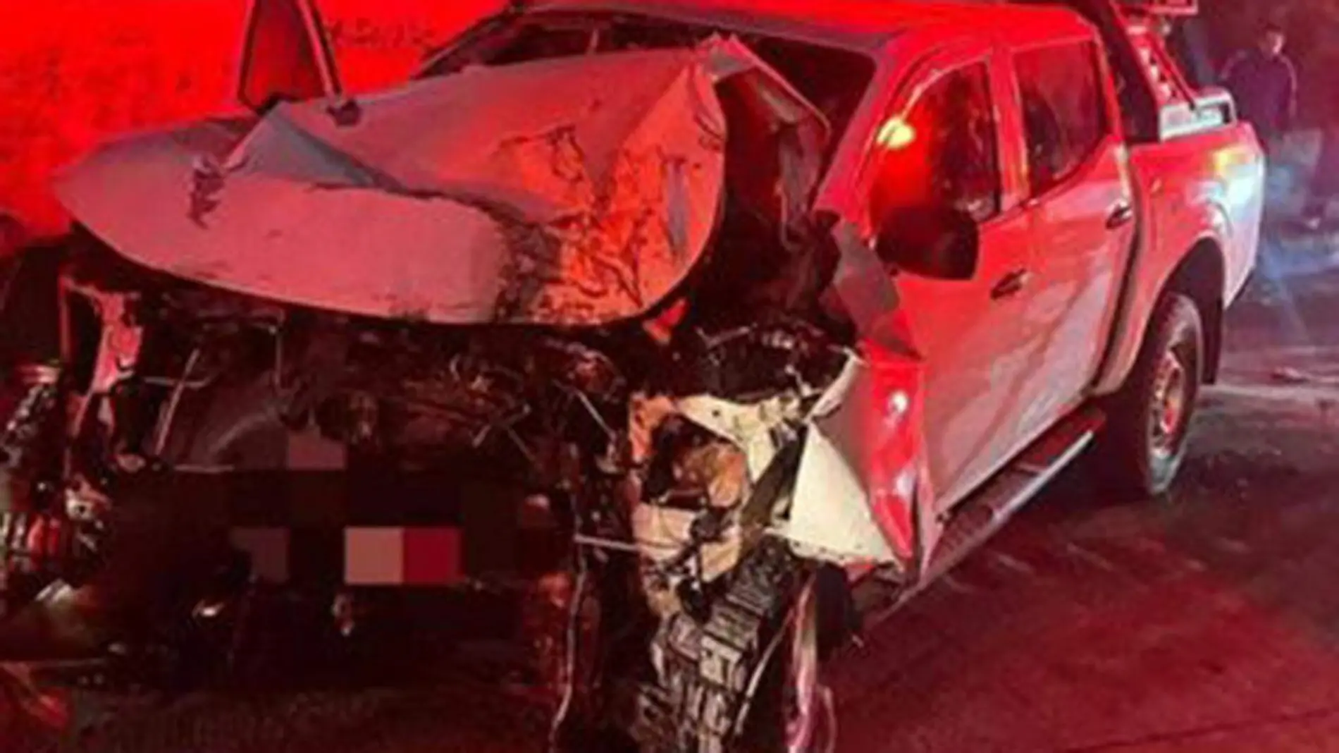 Los socorristas y peritos encontraron una camioneta blanca NP300 sobre el camellón central de la autopista y colisionada de frente contra uno de los pilares de la mencionada vía de comunicación.